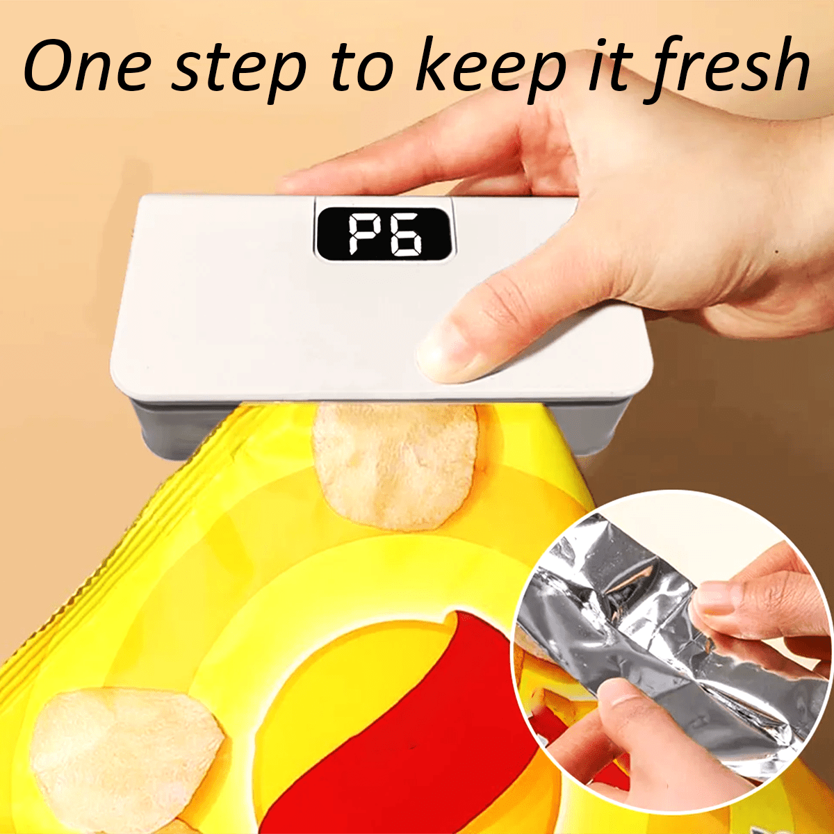 1pc, Portable Rechargeable USB Sealer, Can Be Used 100-300 Times on a Single Charge, with 6 Modes Adjustable, Used for Snack Candy Plastic Bag Food Storage, Can Be Carried Around for Convenient Use on the Go or at Home